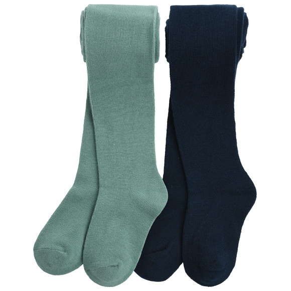 Twee paar panty's van een zachte biologische katoenmix in donkergrijs en zwart. Met een elastische geribde tailleband voor een comfortabele pasvorm.