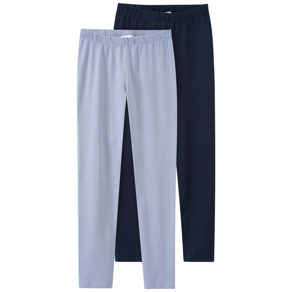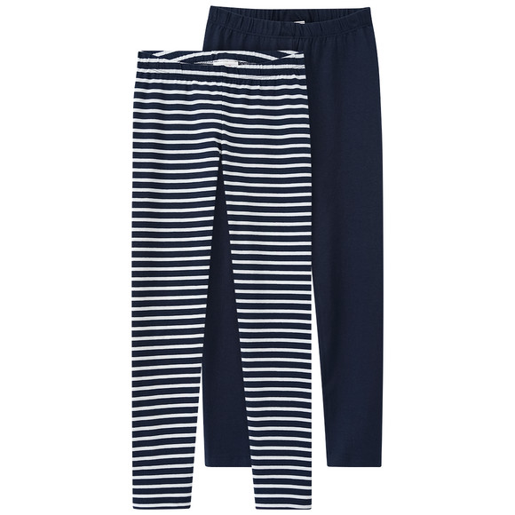 Twee leggings met gecertificeerd biologisch katoen in effen donkerblauw. Met elastische tailleband voor een comfortabele pasvorm.