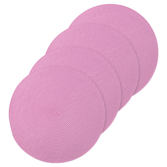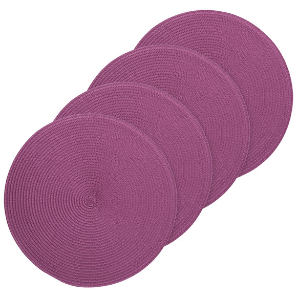 Vier ronde placemats in paars. Eenvoudig gevlochten optiek.