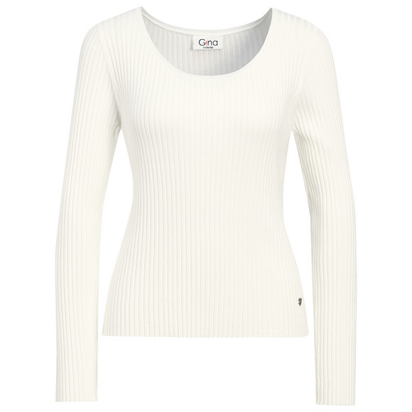 Zacht wit shirt met lange mouwen met geribde structuur en ronde hals. Met een klein metalen hartje aan de zoom.