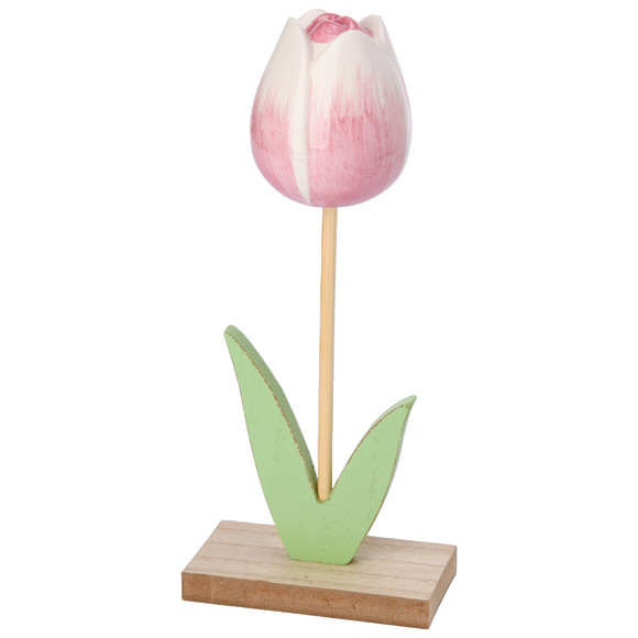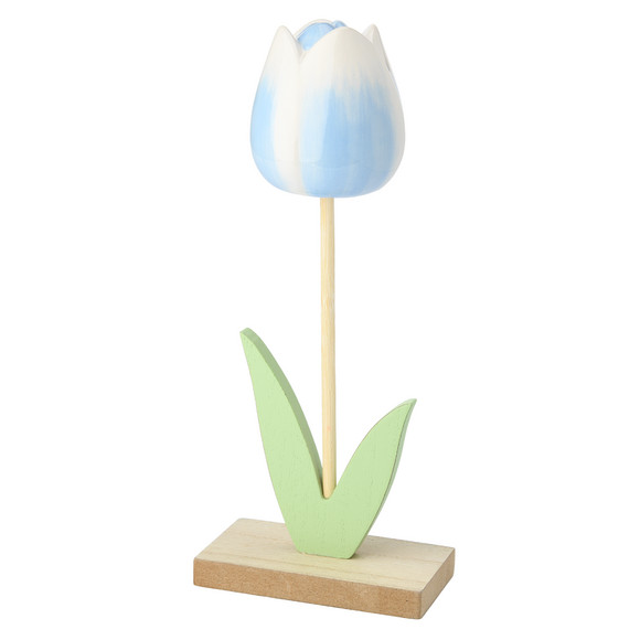 Decoratieve tulp met een voet in houtlook en bloem van keramiek.