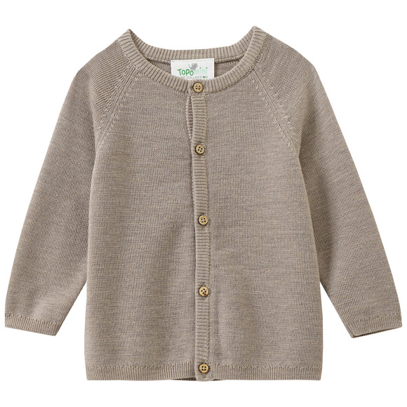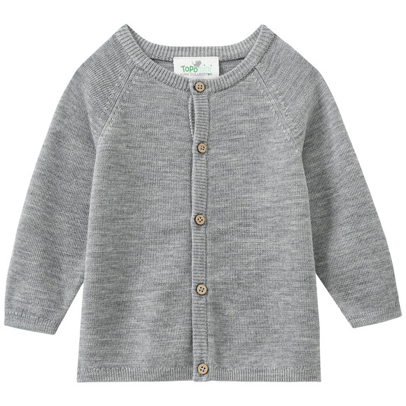 Zachte trui van puur merinowol in donkerblauw. Met geribde boorden en doorlopende knoopsluiting.