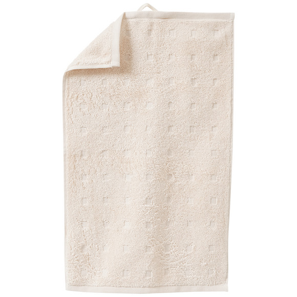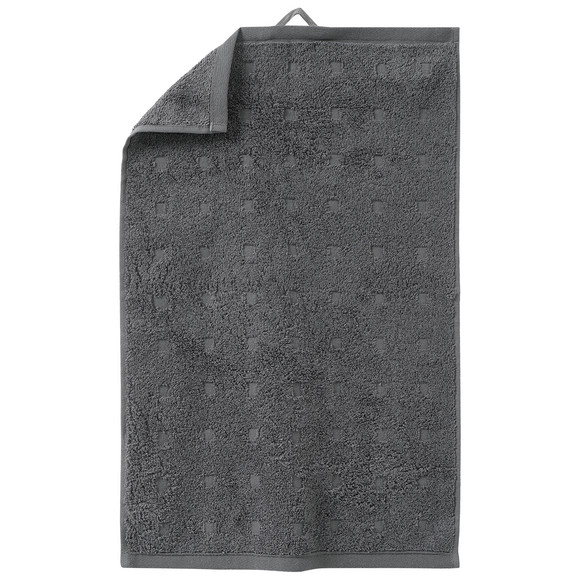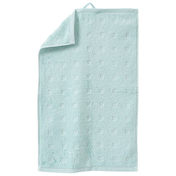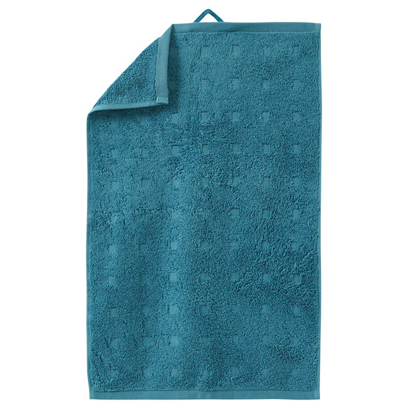 Bordeauxrode gastendoek van sterk absorberende badstof met kleine vierkantjes als ingeweven patroon. Rondom omzoomd en voorzien van een handige lus om op te hangen.