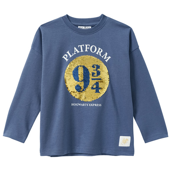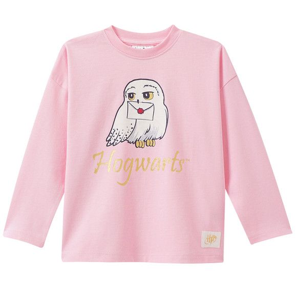 Roze shirt met lange mouwen en origineel motief van "Harry Potter" op de voorkant. Met een fijne geribde boord bij de ronde halslijn.
