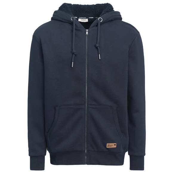 Donkerblauw Tricot vest gemaakt van een comfortabele materiaalmix met een hoog katoengehalte. Met een trekkoord in de capuchon en twee steekzakken. Volledig gevoerd aan de binnenkant.