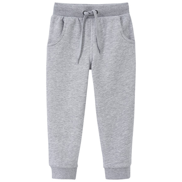 Klassieke joggingbroek van huidvriendelijk katoen in donkergrijs met trekkoord en koord in de elastische ribboord. Praktisch met twee steekzakken aan de voorkant, een achterzak en elastische ribboorden aan de beenuitsnijdingen. Binnenkant heerlijk zacht geruwd.