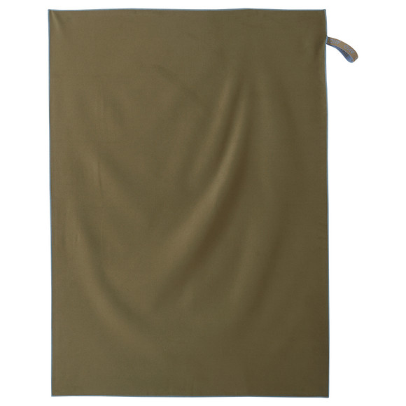 Kleine olijfkleurige sporthanddoek van bijzonder absorberende microvezel met gezoomde uiteinden. Met handige elastische lus voor gemakkelijk transport. Afmetingen ca. 64 x 87 cm (b x l).