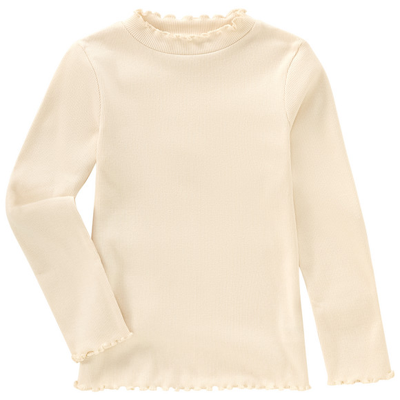 Crème wit T-Shirt lange mouwen met fijne ribbelstructuur. Korte opstaande kraag. Alle halslijnen hebben rolzomen.