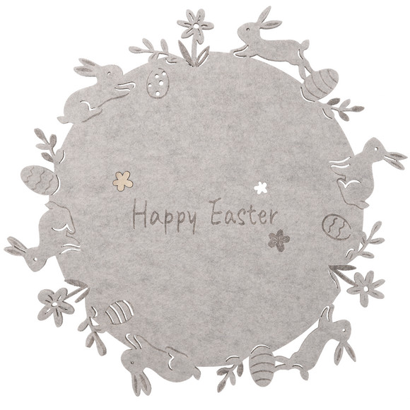 Placemat van vilt in Paas-design. Ronde vorm.