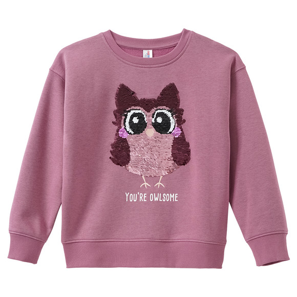 Superzachte Sweatshirts in roze met een uilenmotief van kleurrijke omkeerbare pailletten op de borst. Met geribde boorden aan de ronde hals, mouwen en zoom. Behaaglijk zacht aan de binnenkant.