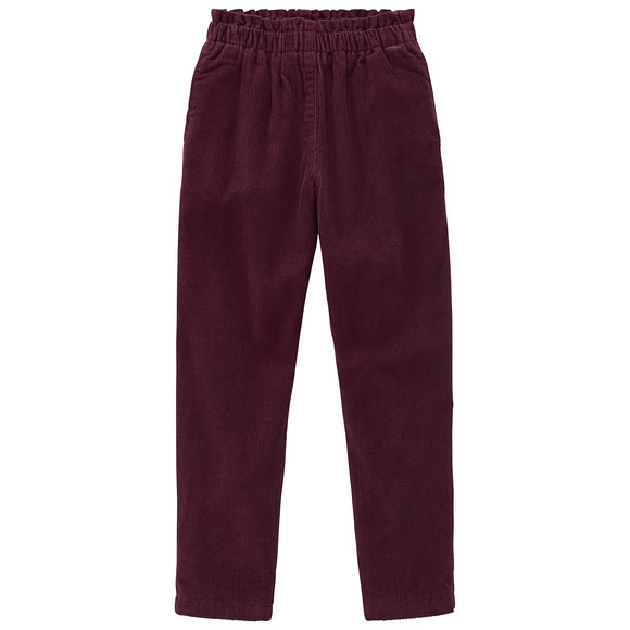 Donkerrode corduroy broek van comfortabel katoen met thermische functie. Licht gerimpeld bij de elastische tailleband. Twee steekzakken voor en twee achterzakken. Zacht gevoerd met katoenen jersey.
