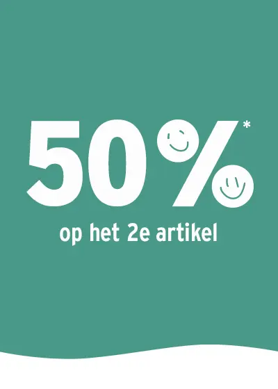 De korting is geldig van 08-04-2026 tot 19-04-2026 voor alle artikelen die zijn gemarkeerd met ‘50% op het 2e artikel’ van themawereld ‘We zijn kleurrijk’. Bij aankoop van het minimumaantal artikelen wordt het voordeligste artikel in mindering gebracht van het totaalbedrag voor de artikelen die in aanmerking komen voor de actie. Geldig in de onlinewinkel en de app van Ernsting's family. Dit geldt niet voor tegoedbonnen en verzendkosten. Online bestellingen kunnen na afhaling in het filiaal niet nog van een korting worden voorzien. Niet combineerbaar met andere (actie-)kortingen. De korting wordt aan het einde van het betalingsproces automatisch berekend.